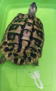 Oft spielt eine Aus­trock­nung des Kör­pers wäh­rend des Win­ter­schla­fes eine Rol­le, ins­be­son­de­re wenn die Über­win­te­rungs­tem­pe­ra­tur über 8 Grad Cel­si­us lag. Sie kön­nen dem Tier hel­fen, wenn Sie es baden aber nicht als Well­ness Bad son­dern als “Stress­bad” (d.h etwas zu viel Was­ser und zu war­mes Was­ser) so dass es mit hef­ti­gen Ruder­be­we­gun­gen reagiert und Was­ser schluckt. Oft ent­lee­ren die Pan­zer auch dabei  ihre Harn­bla­sen und man sieht die weis­sen Schlie­ren ihrer Harn­säu­re­aus­schei­dun­gen. Das Aus­schei­den der Schla­cken ist sehr wich­tig, die Gicht-Kris­tal­le lagern sich sonst im Herz­beu­tel und den Gelen­ken ab.