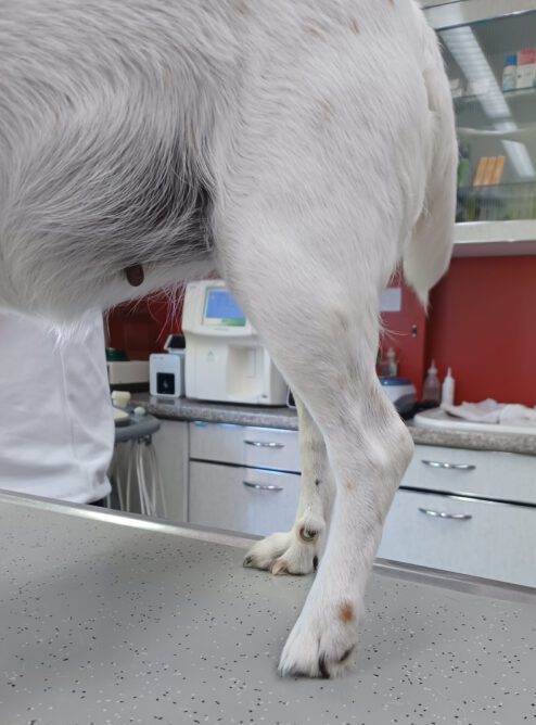 Der Kreuzbandriss kann akut verlaufen. Typisch dabei ist eine Fußung des Hundes auf der Pfotenspitze.