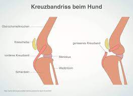 Beim Menschen ist der Kreuzbandriss als akute Überlastung (v.a. Fußball; Schifahren) bekannt. Beim Hund ist es eher eine chronisch degenerative Gelenkserkrankung, die schlußendlich in einem Riss endet.