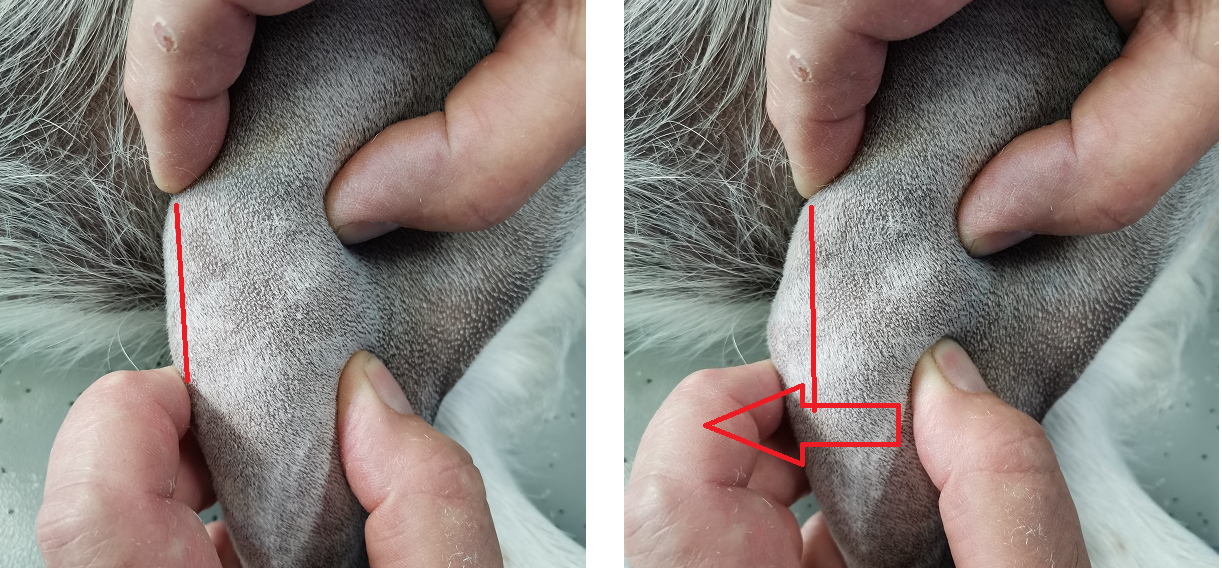 Bei stark bemuskelten Hunden kann für das Auslösen der Schublade eine Sedation erforderlich sein.