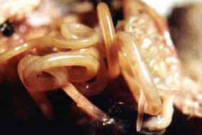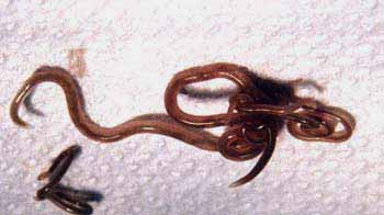 Mit dem blossen Auge sieht man in dem Kot nichts, weil Spulwürmer nur selten spontan abgehen oder auch nicht erbrochen werden. Auffällig ist hauptsächlich die Abmagerung der Tiere. Wenn man verwurmte Tiere anfasst kommen sie einem sehr leicht vor.